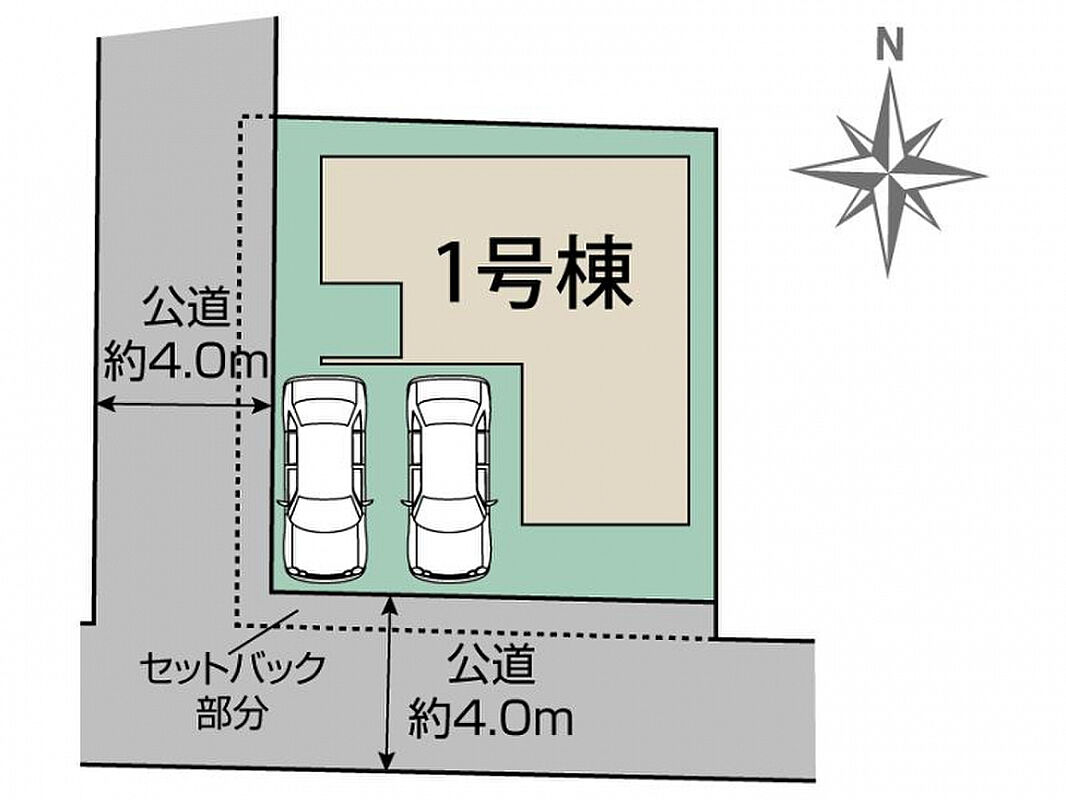 | 駐車場 | 2台 | 道路の幅員 | 南4.0m公道、西4.0m公道 |