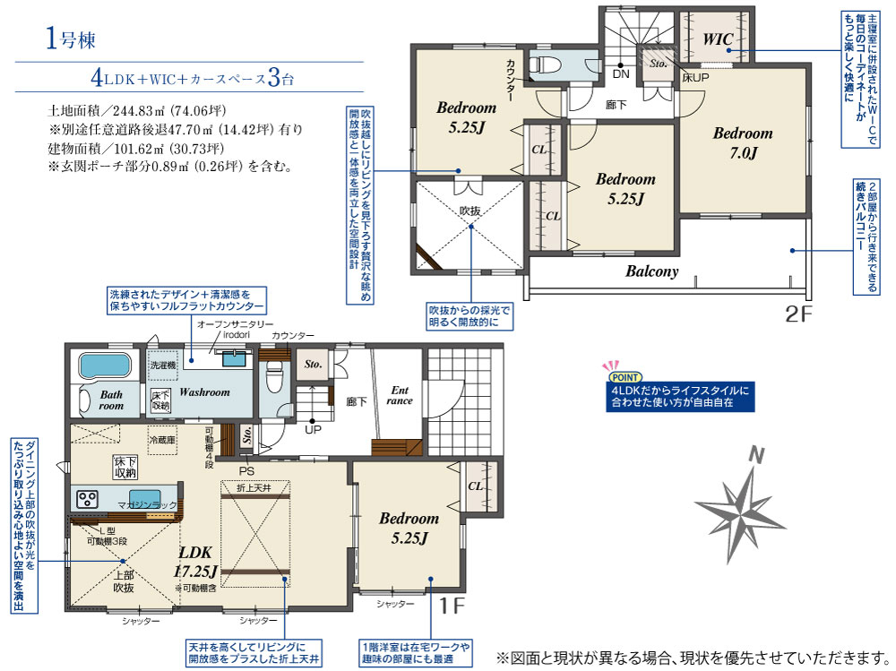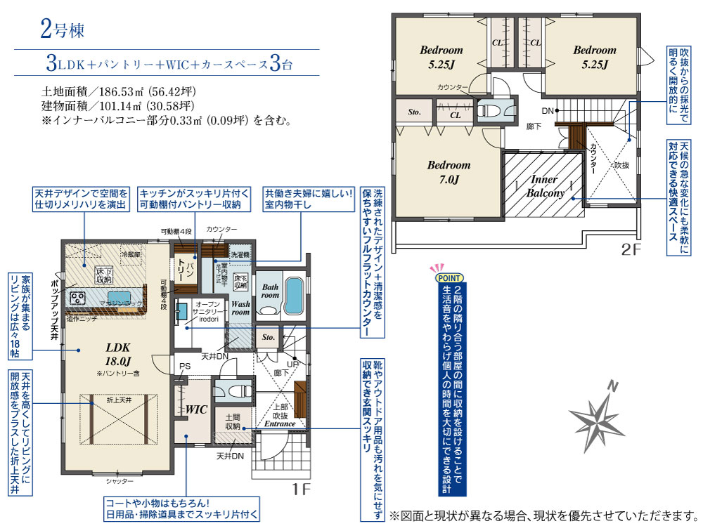 | 建物面積 | 101.14m2(約30.59坪)~111.58m2(約33.75坪) | 土地面積 | 186.53m2(約56.42坪)~244.83m2(約74.06坪) |