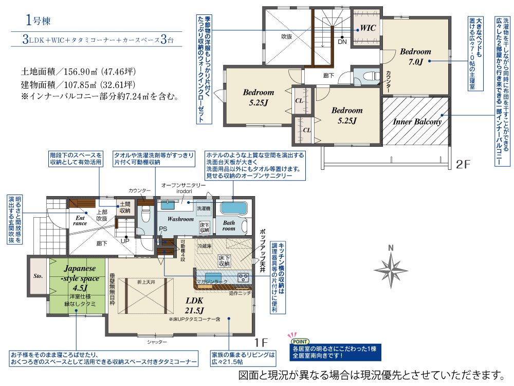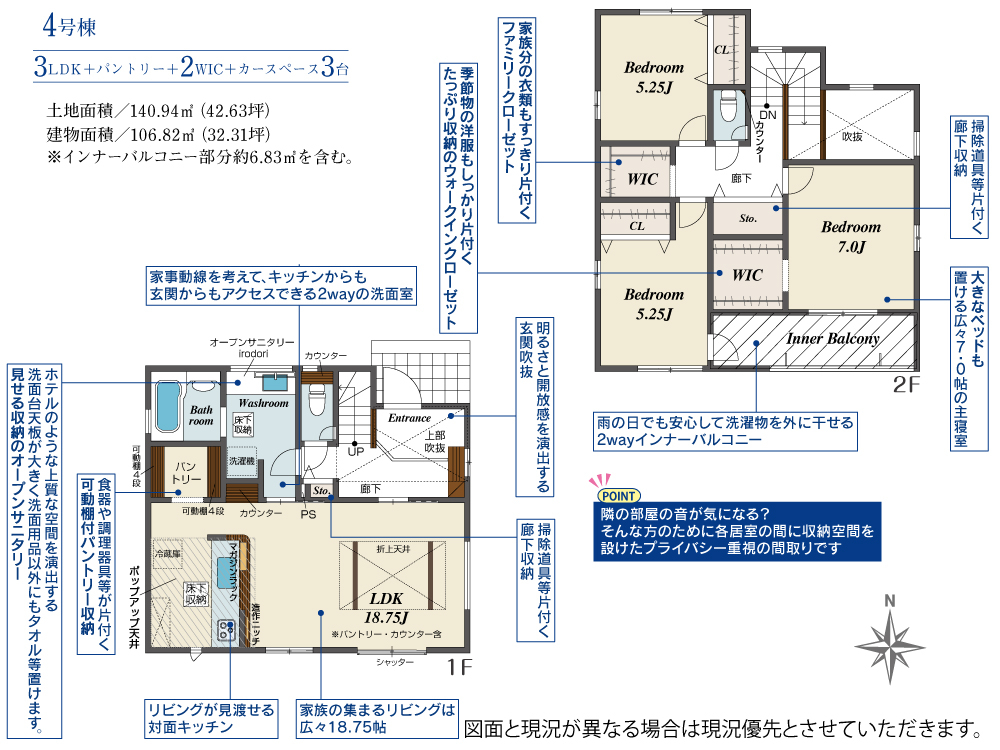 | 建物面積 | 106.82m2(約32.31坪)~114.90m2(約34.75坪) | 土地面積 | 140.94m2(約42.63坪)~163.98m2(約49.60坪) |