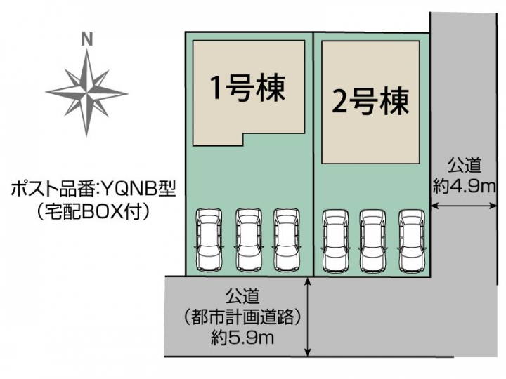 | 駐車場 | 3台 | 道路の幅員 | 南5.9m公道、東4.9m公道 |
