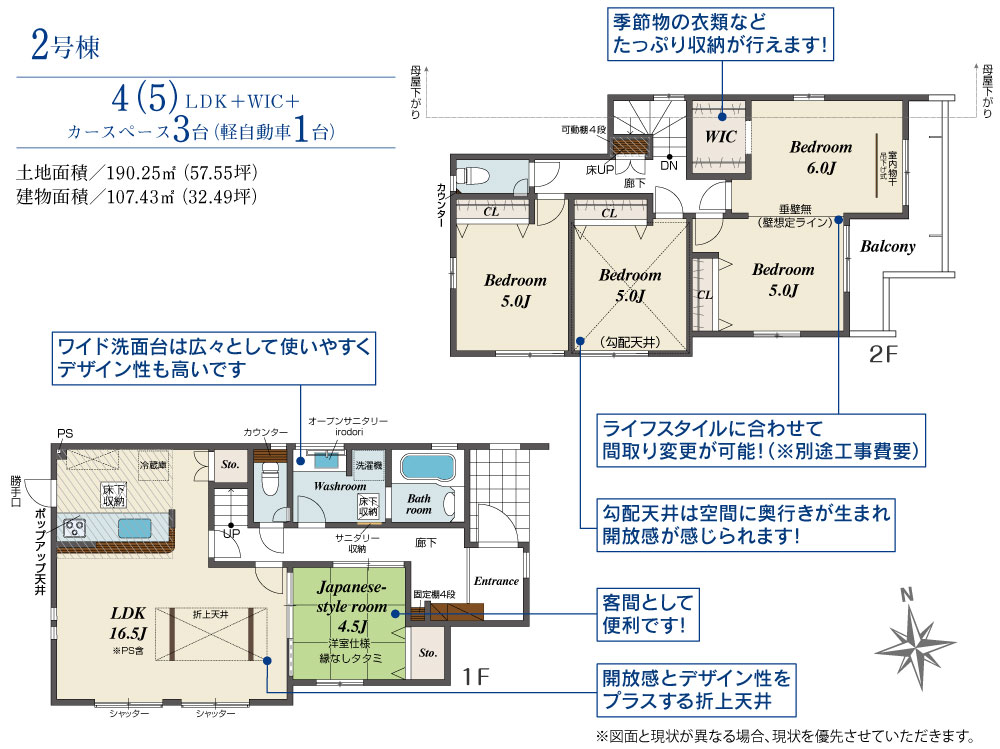 | 建物面積 | 107.43m2(約32.49坪) | 土地面積 | 190.25m2(約57.55坪) |