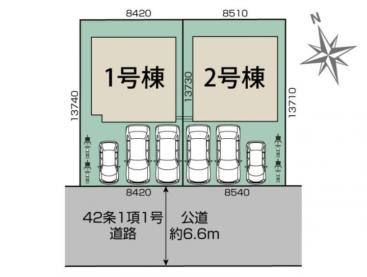 | 駐車場 | 3台 | 道路の幅員 | 南側6.6m公道42条1項1号道路、 |