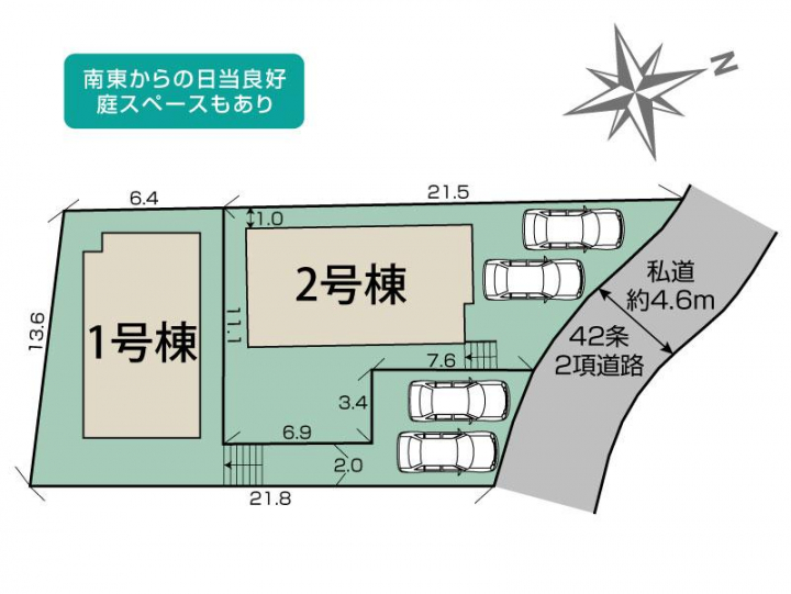 | 駐車場 | 2台 | 道路の幅員 | 北東4.6m私道42条2項道路 |