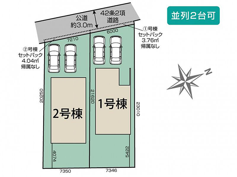 | 駐車場 | 2台 | 道路の幅員 | 西3.0m公道 |
