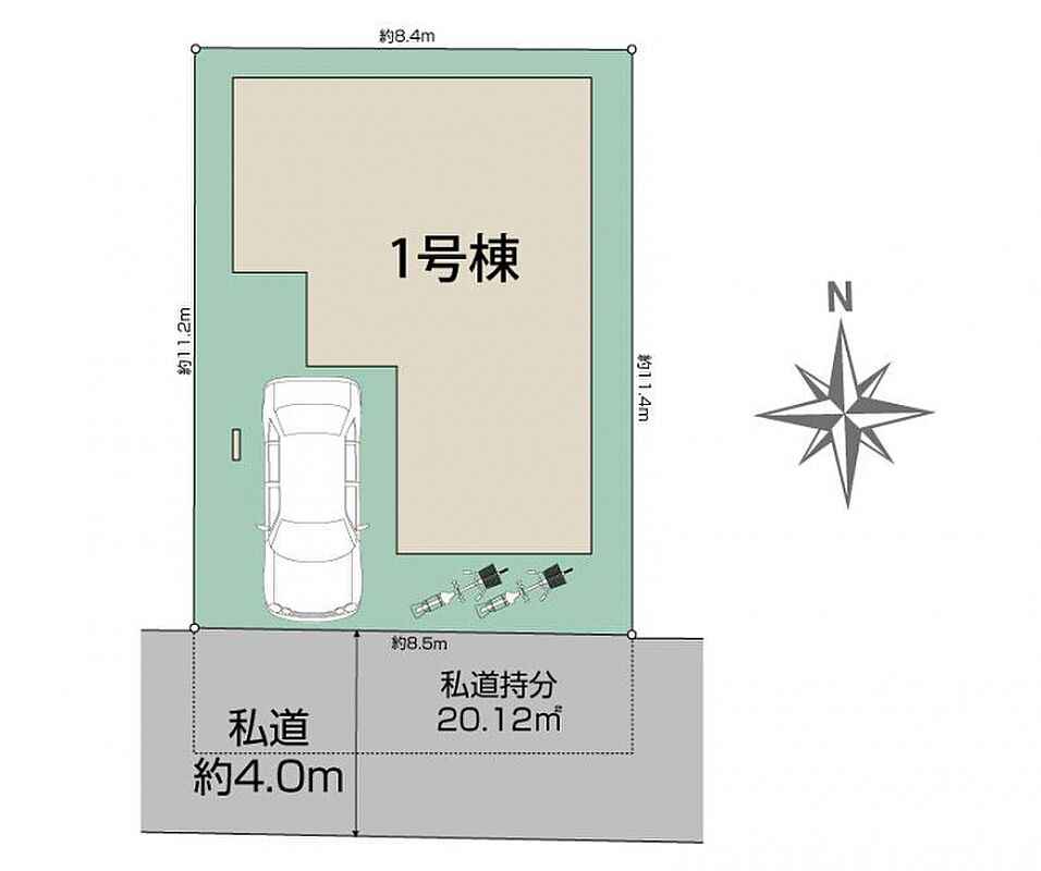 | 駐車場 | 1台 | 道路の幅員 | 南4.0m私道 |