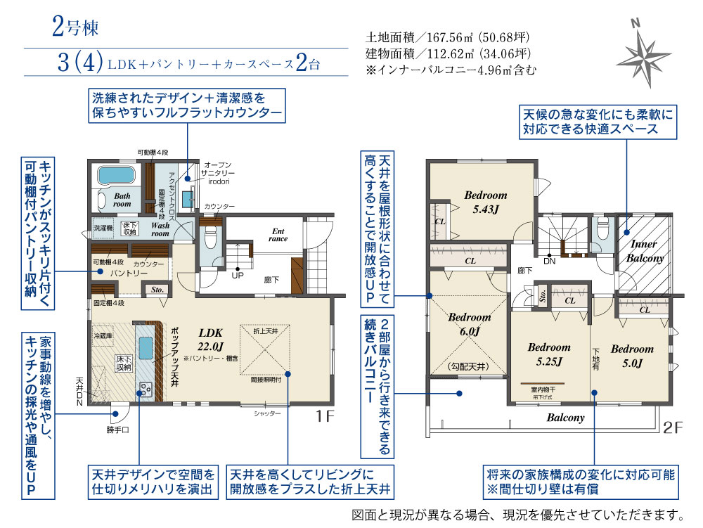 | 建物面積 | 104.39m2(約31.57坪)~112.62m2(約34.06坪) | 土地面積 | 167.56m2(約50.68坪)~167.62m2(約50.70坪) |