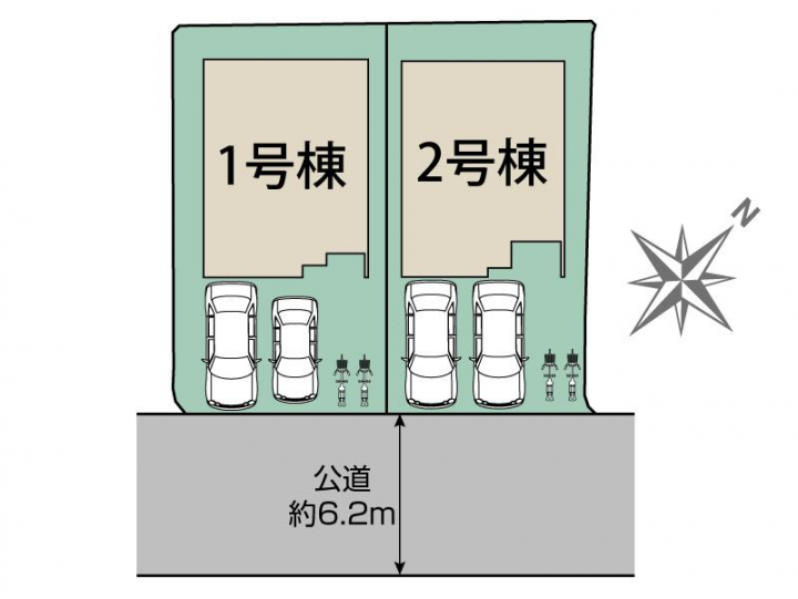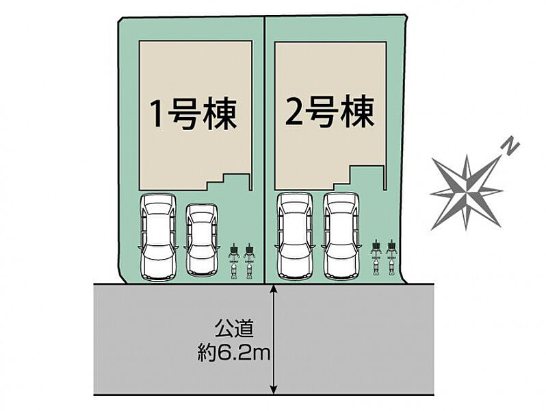 | 駐車場 | 2台 | 道路の幅員 | 南東約6.2m公道 |