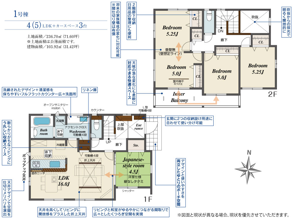 | 建物面積 | 103.92m2(約31.43坪) | 土地面積 | 236.70m2(約71.60坪) |