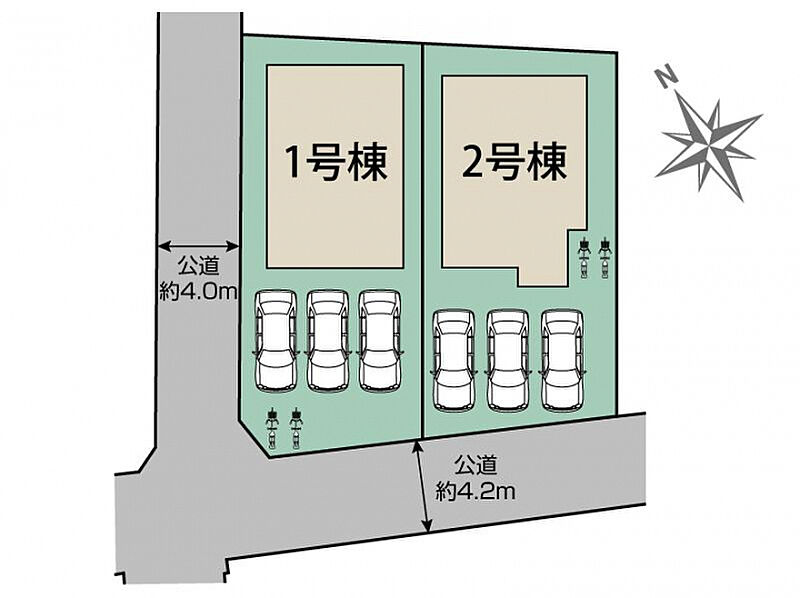 | 駐車場 | 3台 | 道路の幅員 | 南約4.2m公道、西約4.0m公道 |