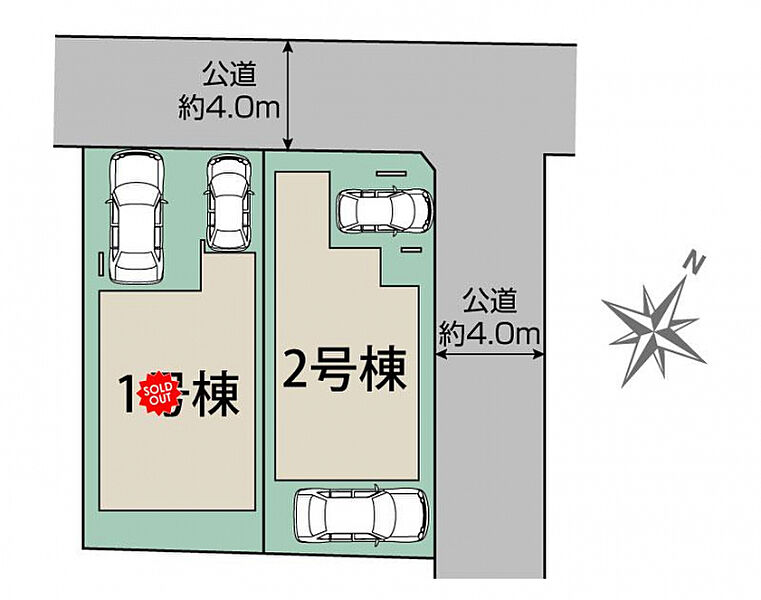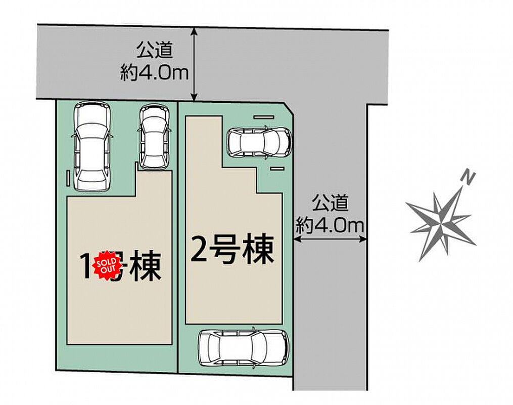 | 駐車場 | 2台 | 道路の幅員 | 北4.0m公道、東4.0m公道 |