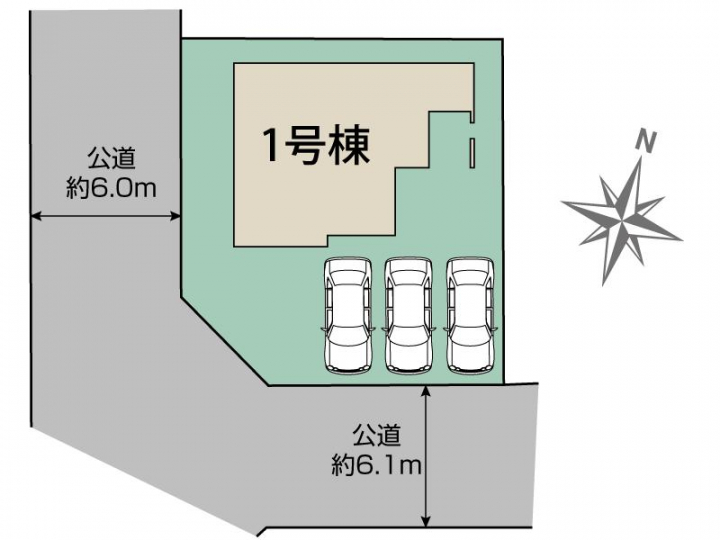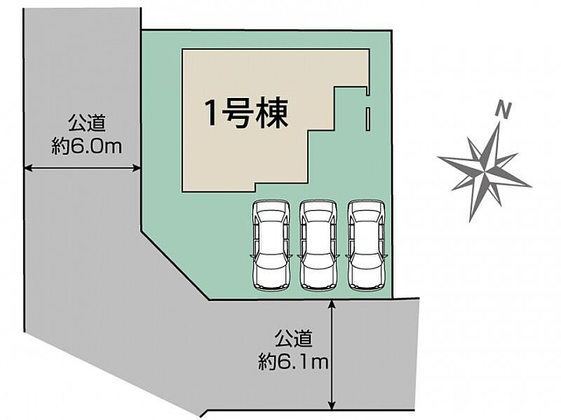| 駐車場 | 3台 | 道路の幅員 | 南6.1m公道、西6.0m公道 |