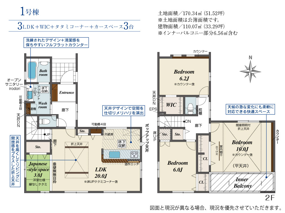 | 建物面積 | 110.07m2(約33.29坪) | 土地面積 | 170.34m2(約51.52坪) |