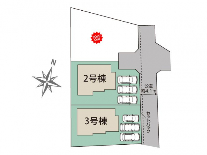 | 駐車場 | 3台 | 道路の幅員 | 東約4.1m公道 |