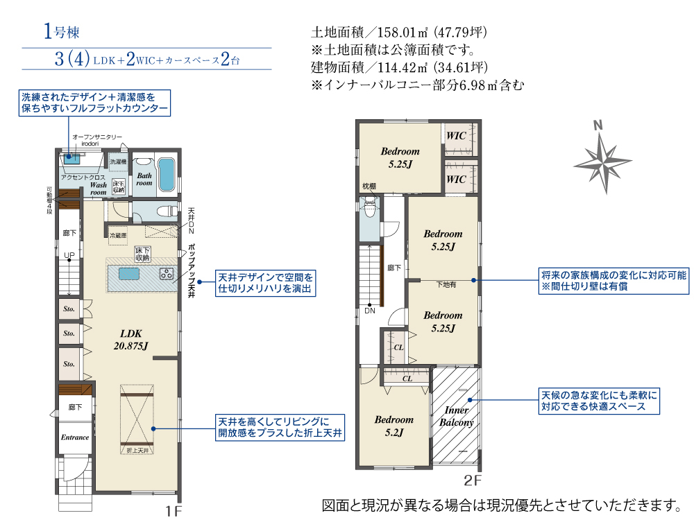 | 建物面積 | 114.42m2(約34.61坪) | 土地面積 | 158.01m2(約47.79坪) |