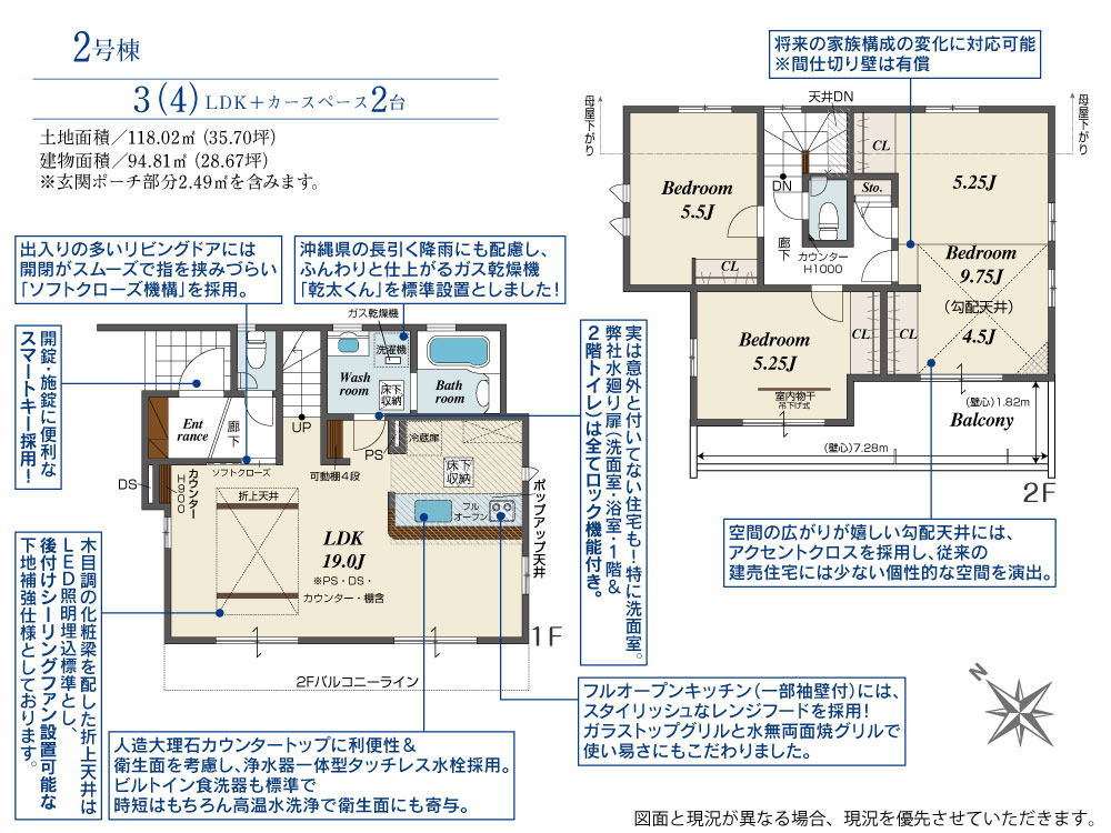 | 建物面積 | 88.60m2(約26.80坪)~98.54m2(約29.80坪) | 土地面積 | 118.02m2(約35.70坪)~119.44m2(約36.13坪) |