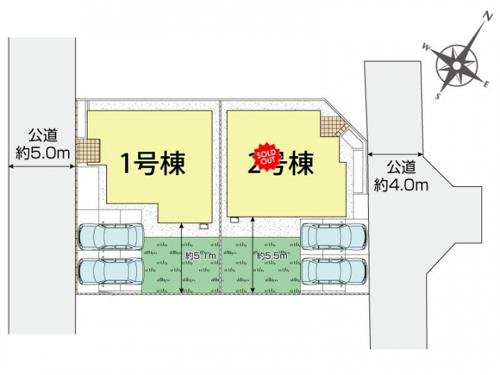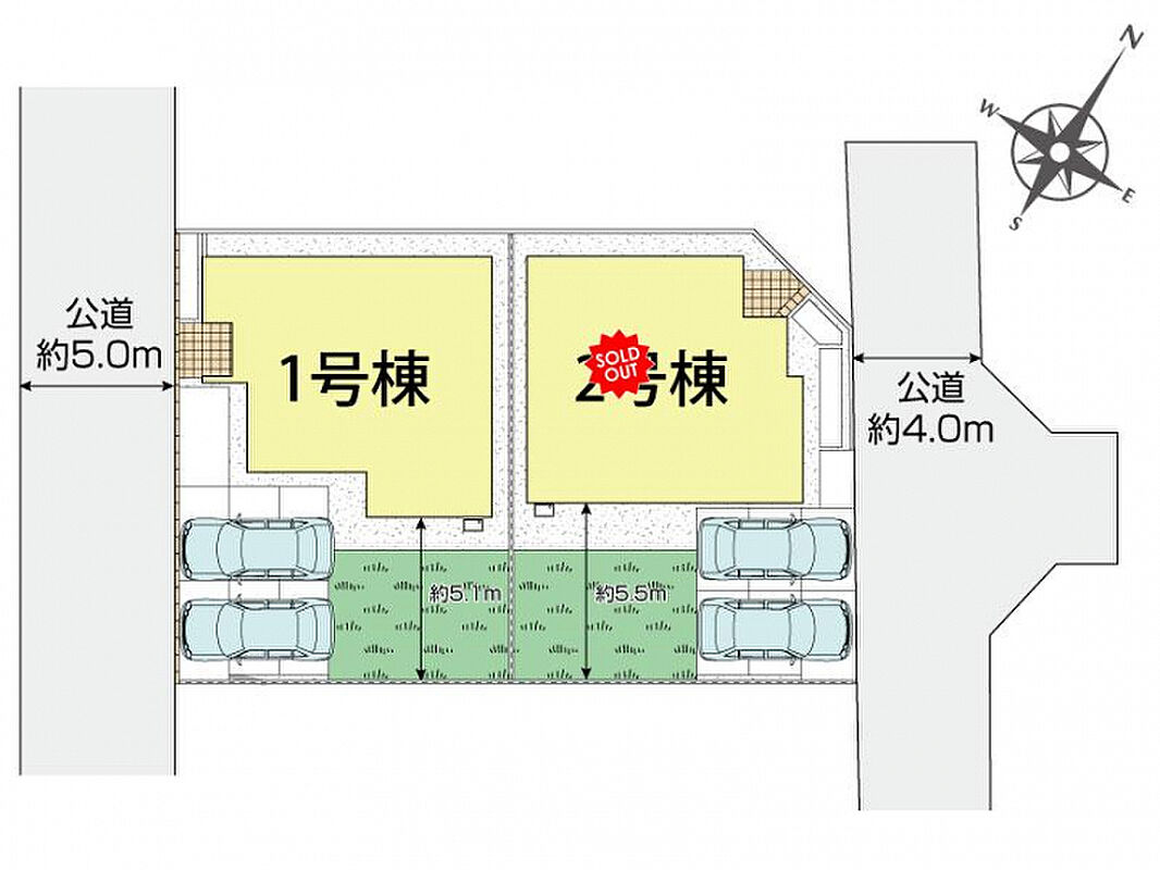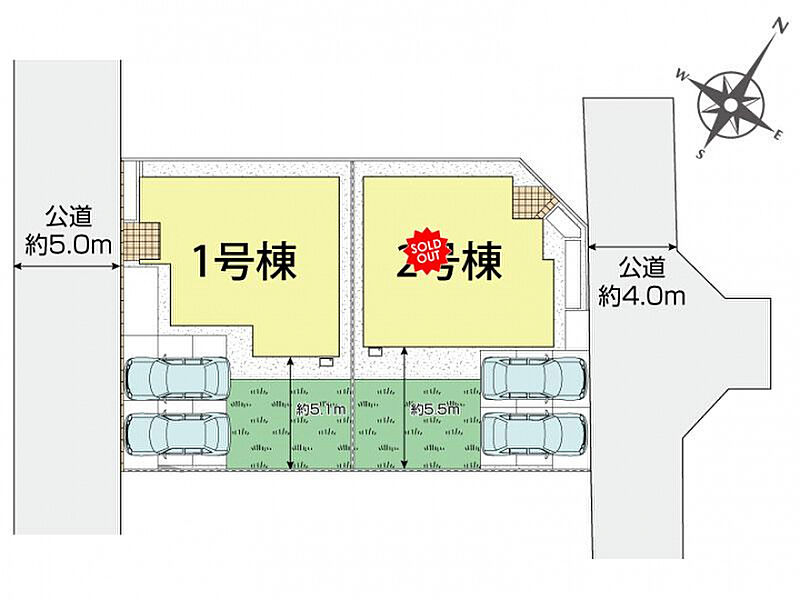 | 駐車場 | 2台 | 道路の幅員 | 東4.0m公道、西5.0m公道 |