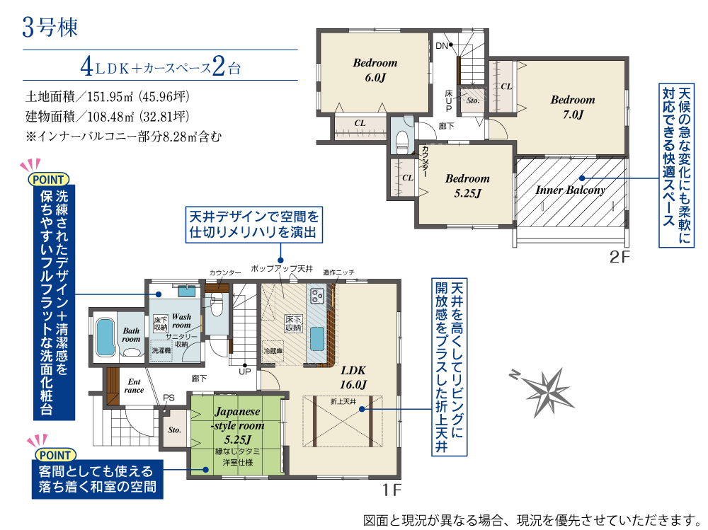 | 建物面積 | 108.48m2(約32.81坪) | 土地面積 | 151.95m2(約45.96坪) |