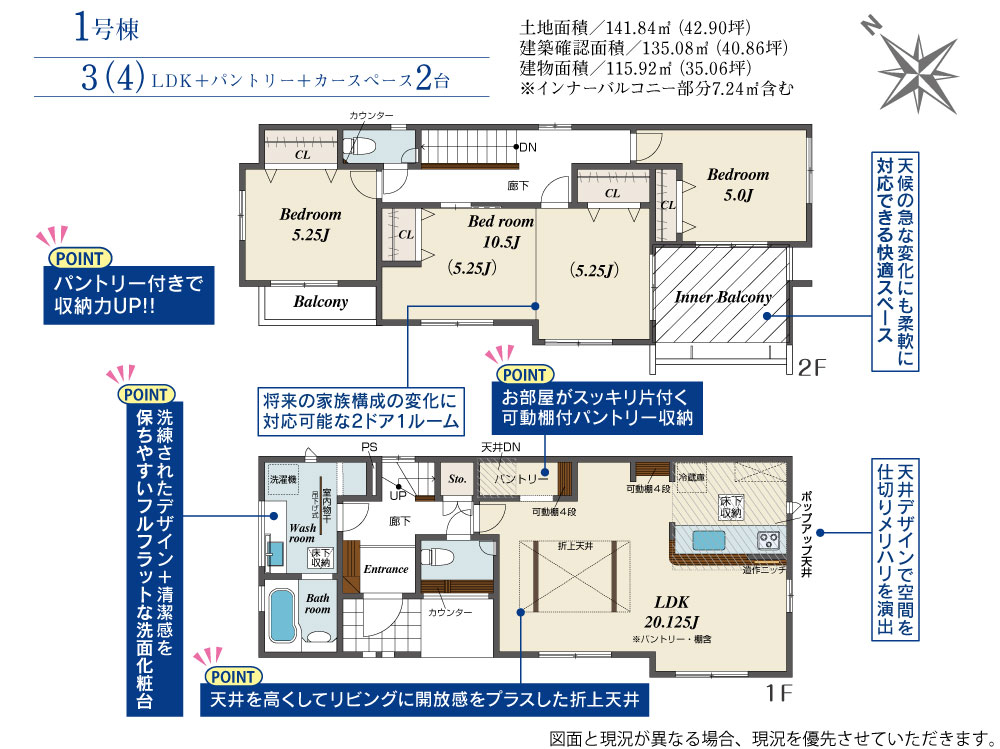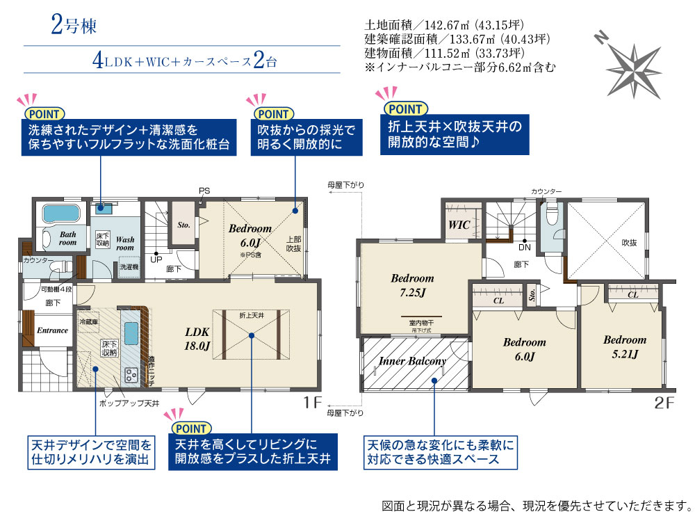 | 建物面積 | 111.52m2(約33.73坪)~115.92m2(約35.06坪) | 土地面積 | 141.84m2(約42.90坪)~142.67m2(約43.15坪) |