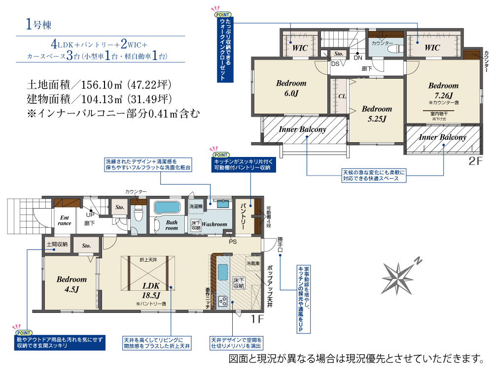 | 建物面積 | 104.13m2(約31.49坪) | 土地面積 | 156.10m2(約47.22坪) |