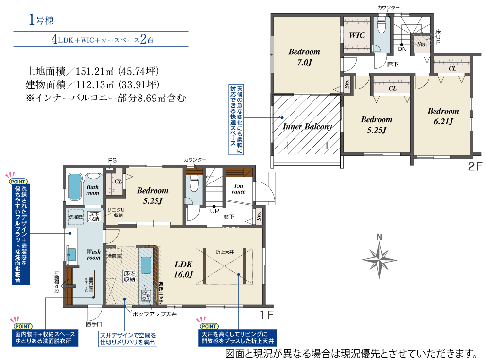 | 建物面積 | 112.13m2(約33.91坪) | 土地面積 | 151.21m2(約45.74坪) |