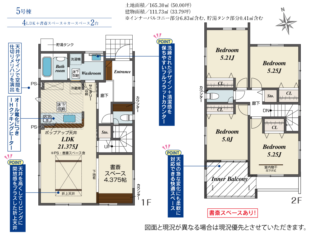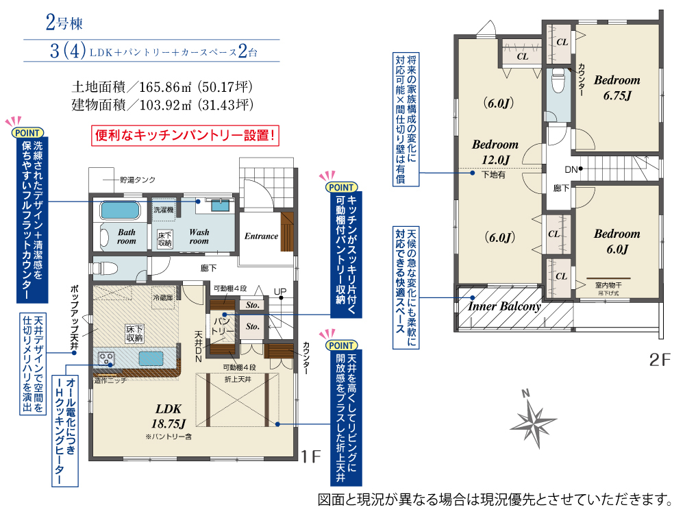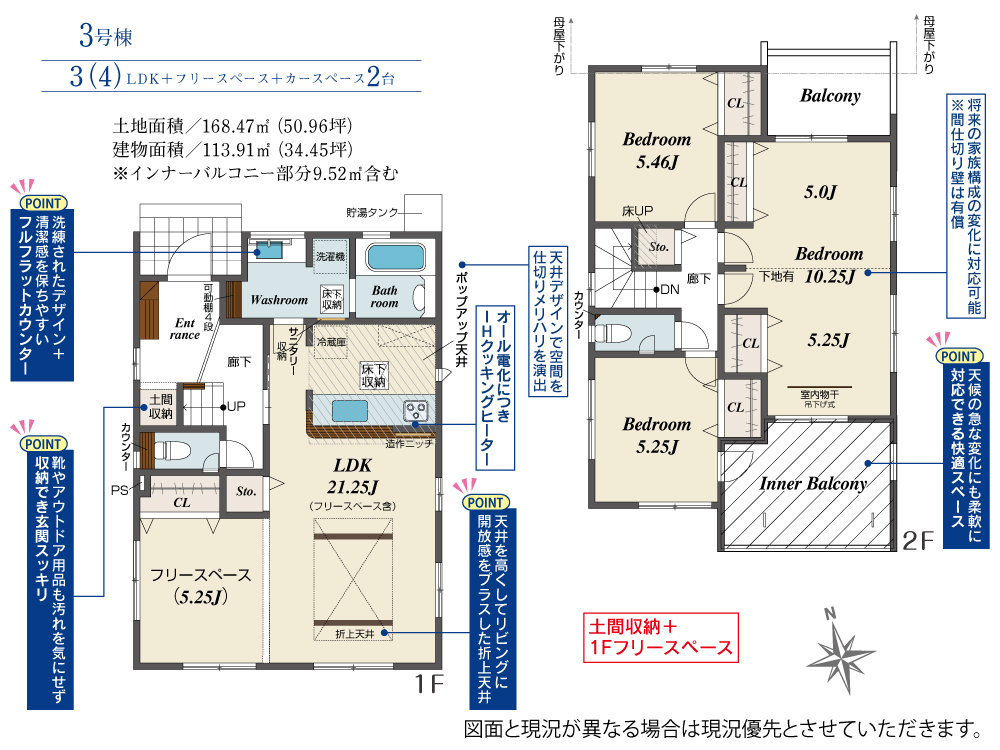 | 建物面積 | 103.92m2(約31.43坪)~113.91m2(約34.45坪) | 土地面積 | 165.30m2(約50.00坪)~171.00m2(約51.72坪) |