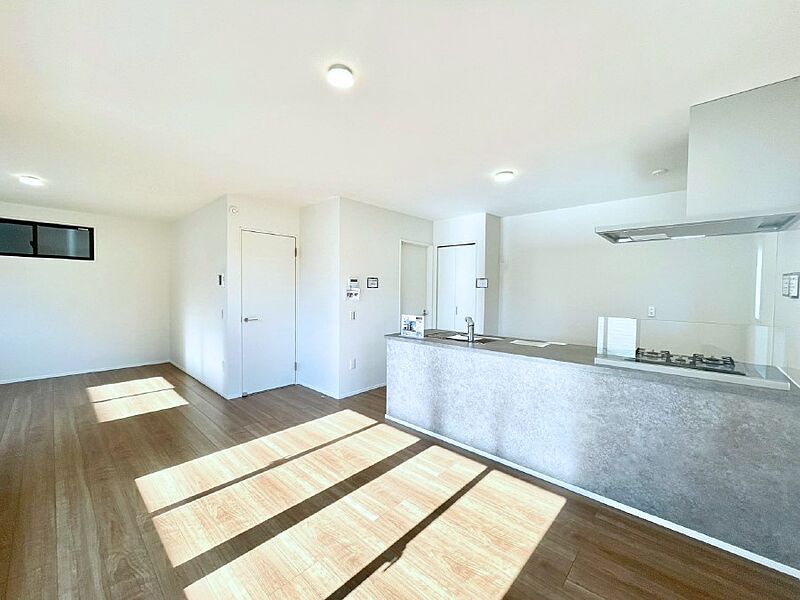 ◆外からの目線が気にならない2階リビングは光が取り込みやすく明るい空間に!うれしい床暖房付き ◆壁際に収まるキッチンでリビング広々 ◆暮らしのスタイルが広がる全室洋室の住まい ◆収納豊富で住空間広々