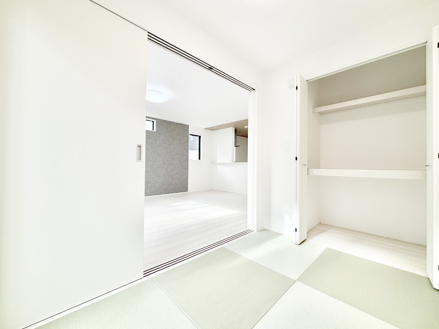 ◆一部屋あると便利な畳スペース!リビング隣接で客間やお昼寝スペースなど大活躍 ◆会話も景色も広がる対面スタイルのキッチン ◆WICは衣類も季節家電もまとめて収納できるゆとりの空間 ◆水まわり集中設計