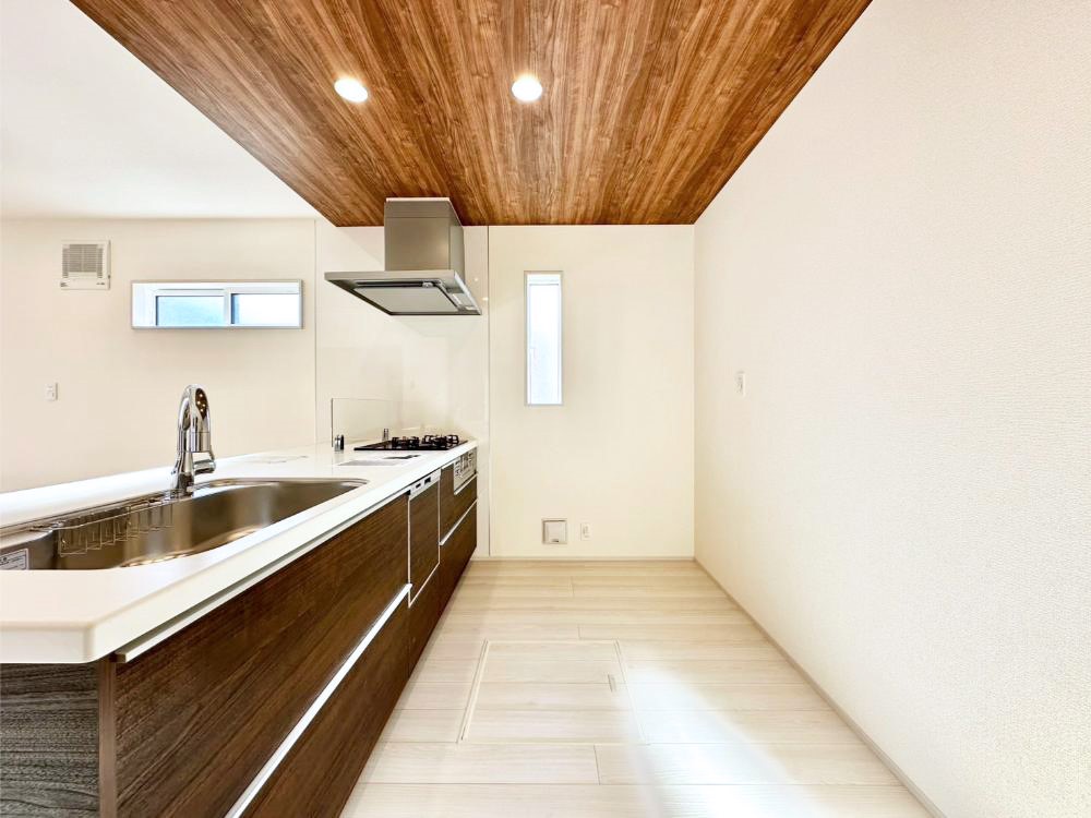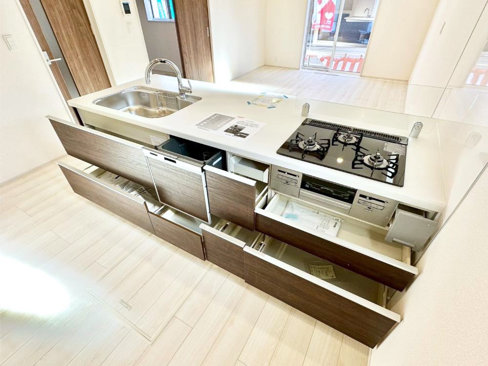 ◆税制優遇の長期優良住宅 ◆開放感あふれる対面キッチンで毎日がカフェ気分 ◆折り上げ天井採用でリビングに伸びやかな開放感 ◆食洗機や浴室乾燥機など充実の設備仕様 ◆家族のカタチに合わせて分割できる洋室