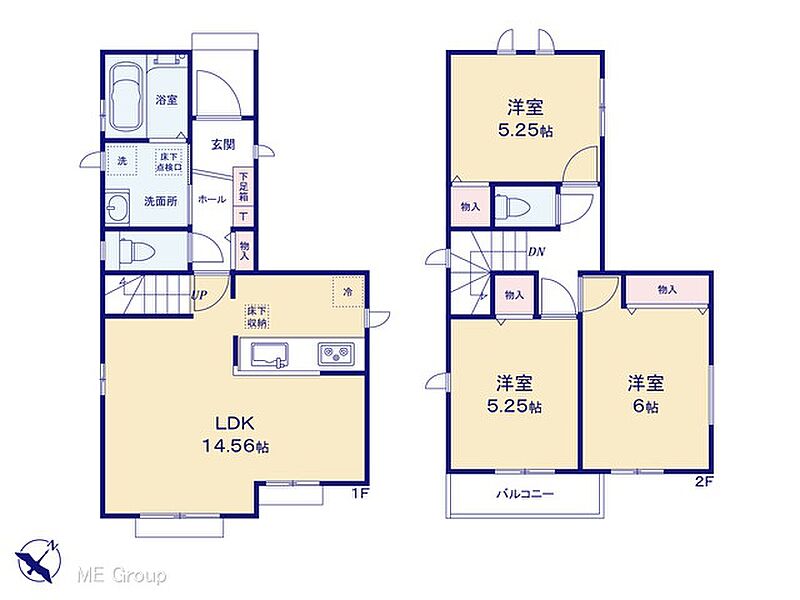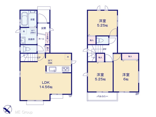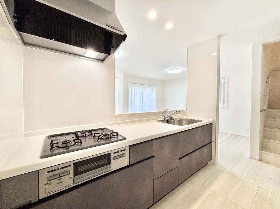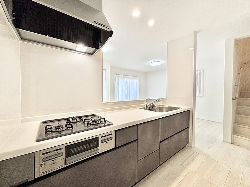 ◆ご家族の顔が見れる安心感!対面キッチン&リビング階段 ◆スタイルを選ばない全室洋室の3LDK ◆全室2面採光の明るい快適空間 ◆1階にリビング、2階に3洋室を配置したプライベート空間を守る間取り