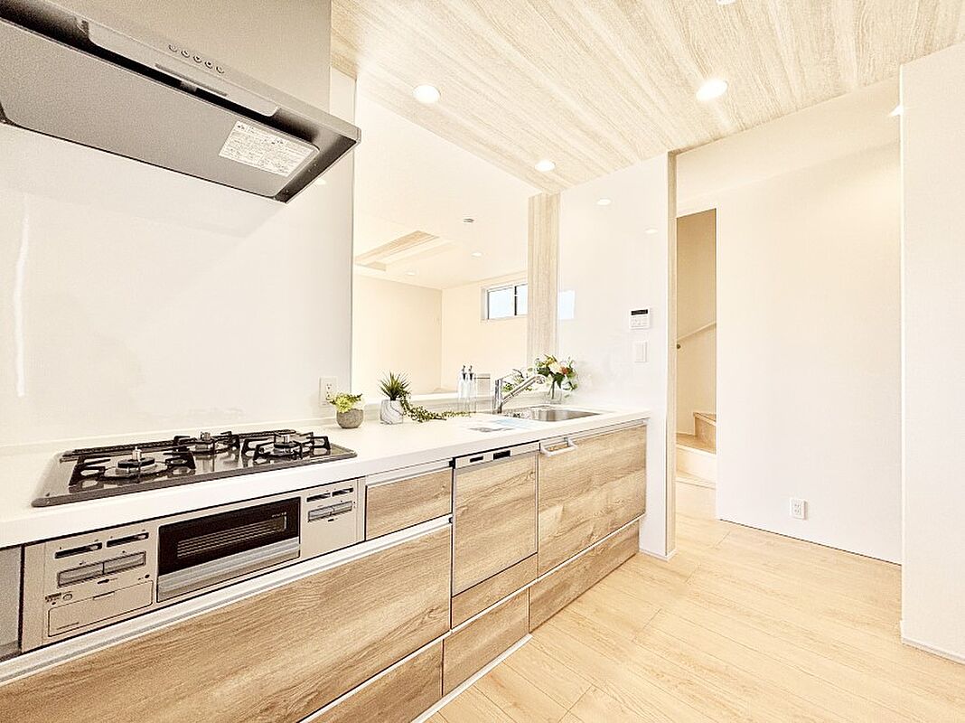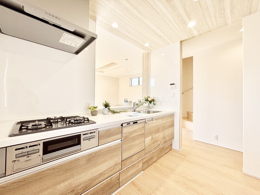 ◆リビングを見渡しながらお料理も楽しく ◆風雨から愛車を守るビルトイン車庫 ◆南バルコニーで毎日のお洗濯も快適に ◆インテリアの幅が広がる全居室フローリング仕様 ◆食洗機や浴室乾燥機など設備充実