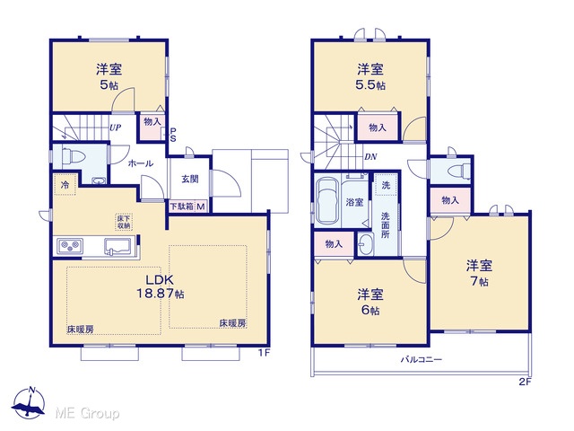 | 建物面積 | 93.98m2~99.15m2 | 土地面積 | 110.63m2~115.29m2 |