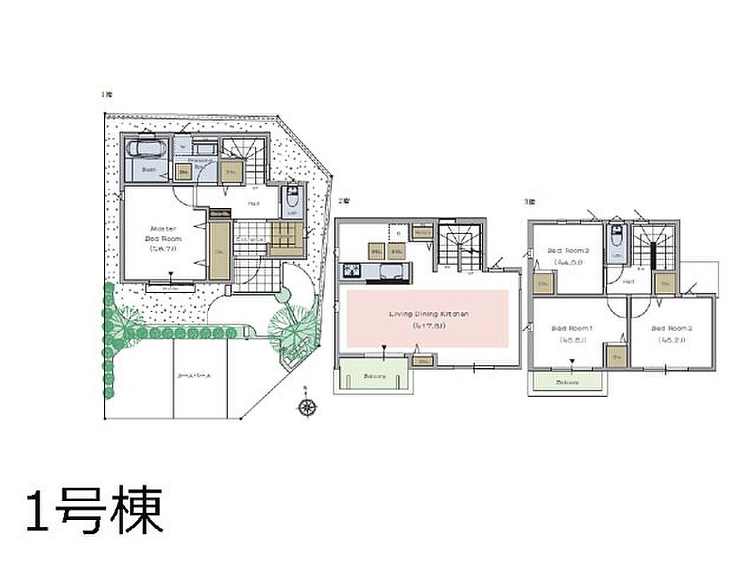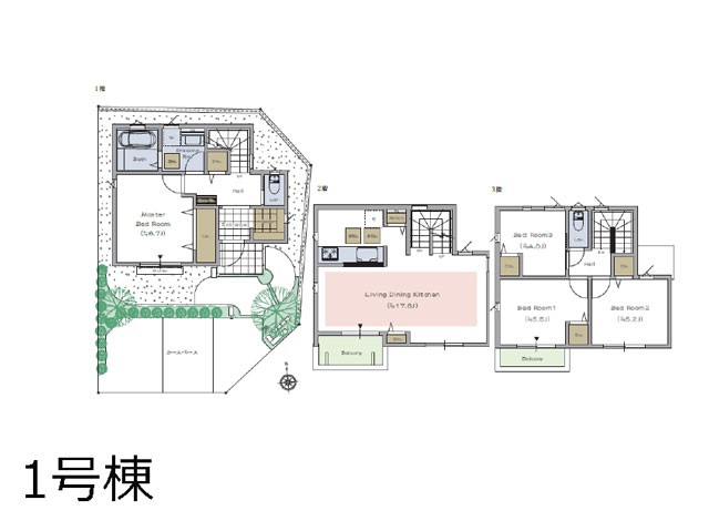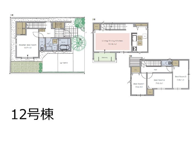 | 建物面積 | 99.36m2~100.16m2 | 土地面積 | 83.87m2~87.07m2 |