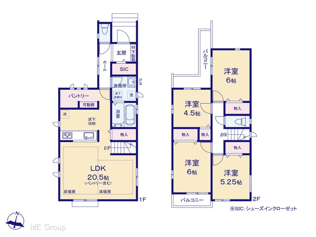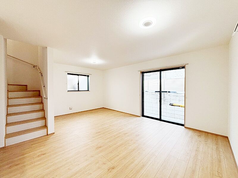◆家具を置いてもゆとりのある約20.5帖のLDK ◆まとめ買いの強い味方!たっぷりしまえるパントリー ◆暮らしのスタイルが広がる全室洋室の住まい ◆家族との自然な会話が増えそうなリビング階段