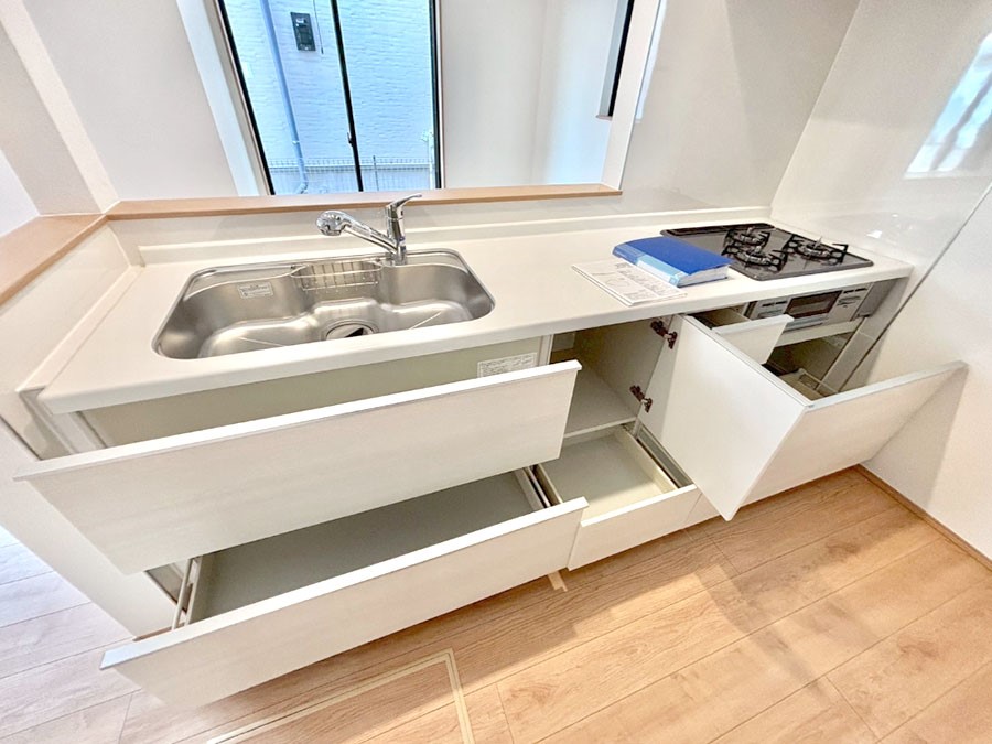 ◆南向きバルコニーで日当たり良好 ◆ 配膳や片付けがスムーズな対面キッチン ◆キッチン周りがすっきり片付く床下収納付きで、収納力も十分 ◆開放感のある広々17帖以上のLDKは、家具の配置もしやすい