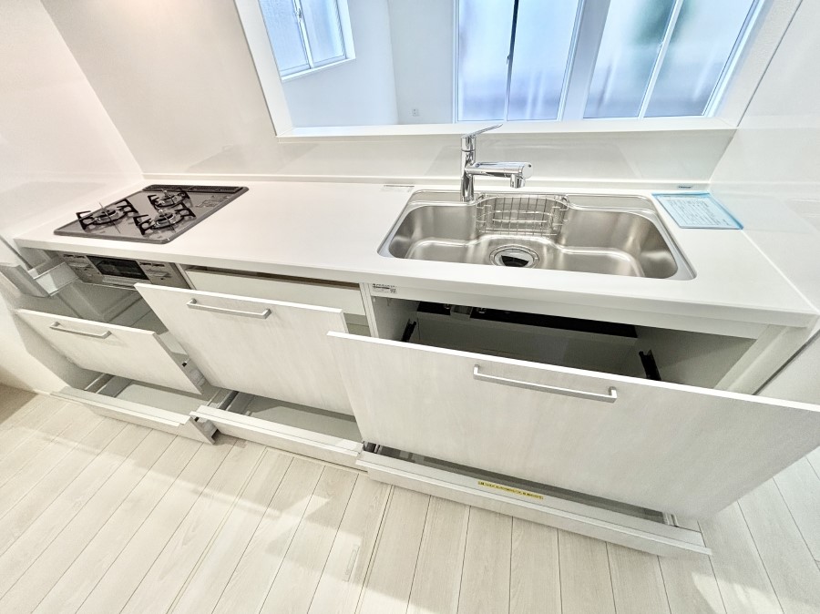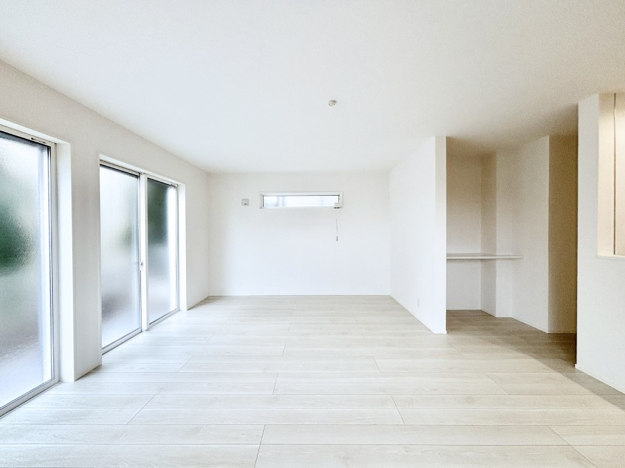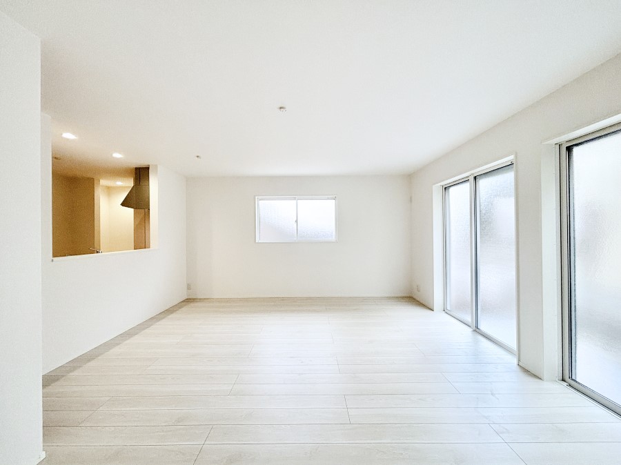 ◆家具を置いてもゆとりのある広々20.7帖のLDKは光あふれる3面採光 ◆開放感あふれる対面キッチンで毎日がカフェ気分 ◆暮らしを美しく整えるウォークインクローゼット ◆統一感が心地よい全室フローリング