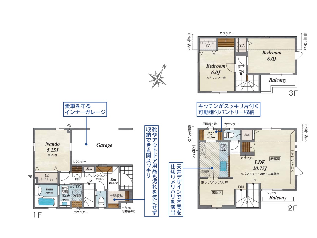 | 間取り | 2LDK~3LDK | 建物構造 | 木造 3階建 |