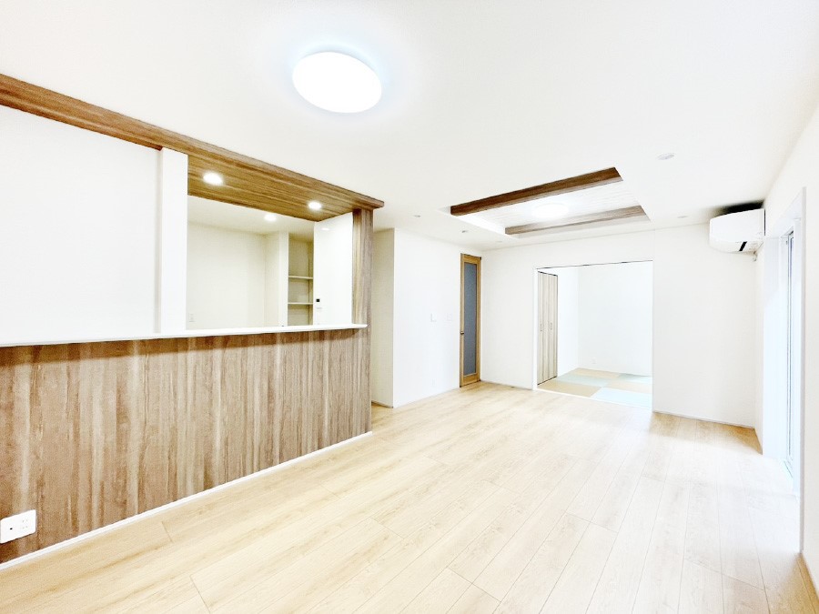 ●17帖以上のゆとりあるLDKで家族団らんの時間を ●料理中も会話が弾む開放感のある対面キッチン ●朝の身支度にも便利な使い分けできるトイレ2箇所 ●陽当たりに配慮された南向きバルコニー