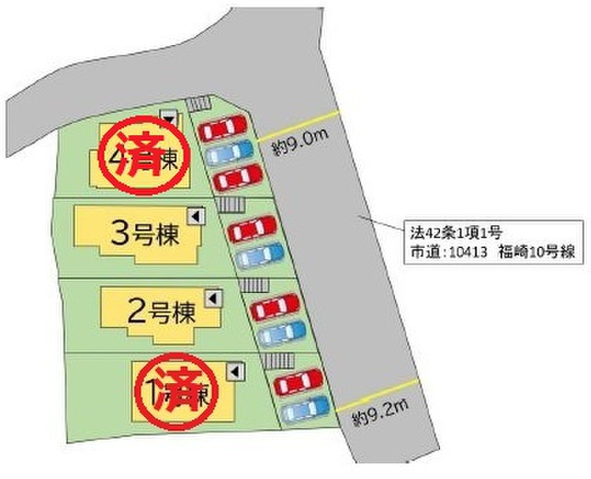 | 駐車場 | 1台 ~ 2台 | 道路の幅員 | 北東側約9.2m |