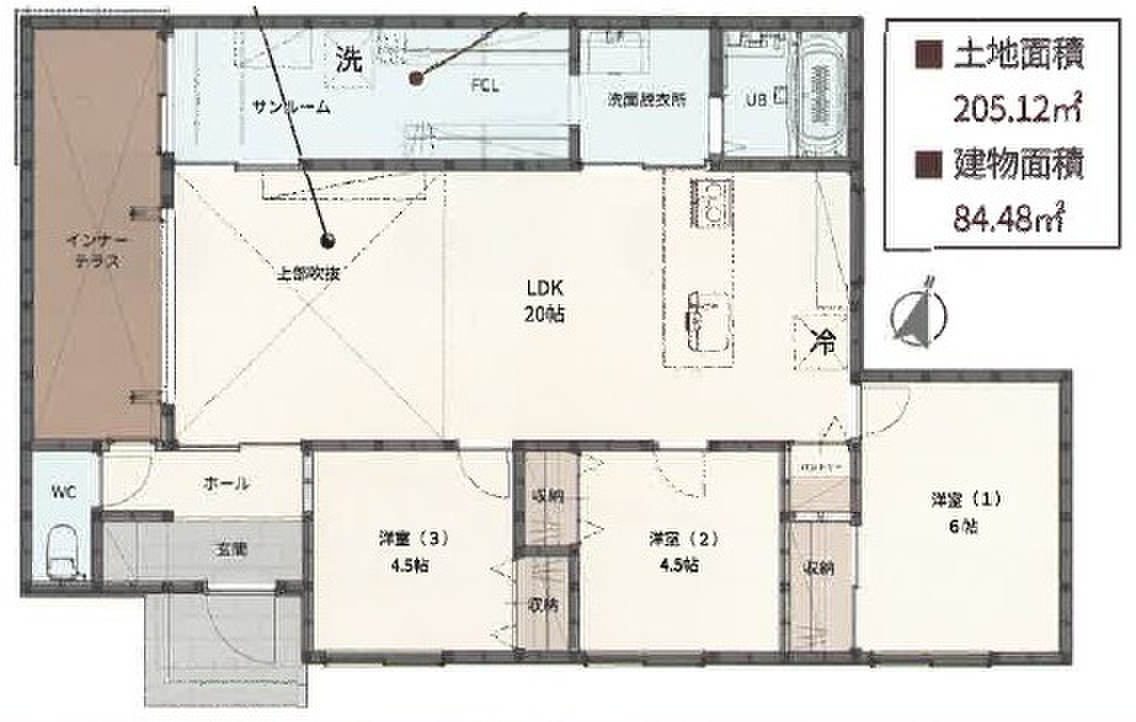 | 建物面積 | 84.48m2 | 土地面積 | 205.12m2 |