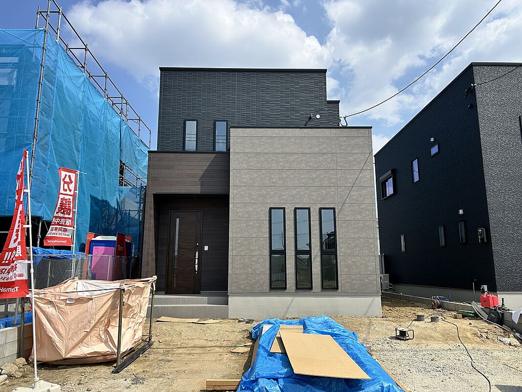 残り3区画。注文住宅のような優れたデザインが魅力のお家です。オール電化住宅でキッチンにはカップボードも標準装備。2階の窓もシャッター付きで防犯面も安心。