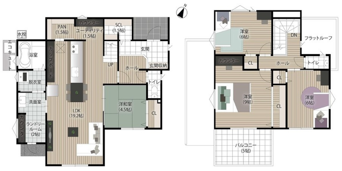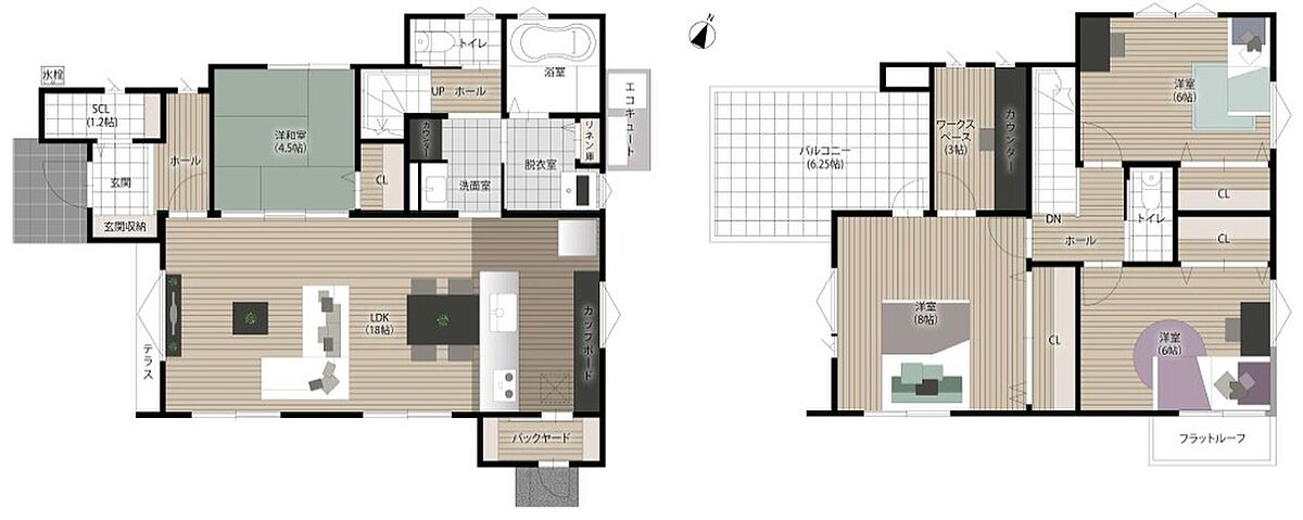 ・1階に4.5帖の和室スペースあり(1号地、3号地)