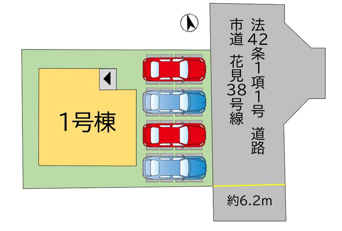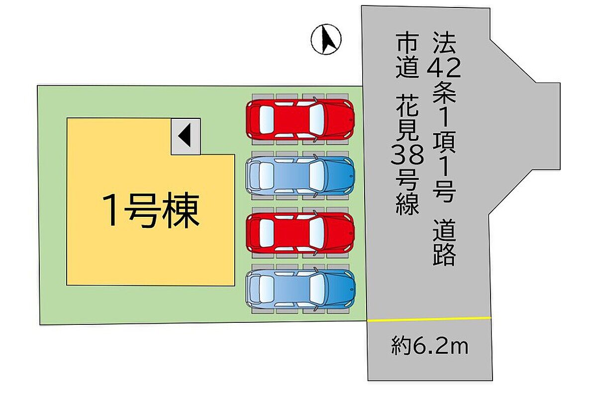 | 駐車場 | 1台 ~ 4台 | 道路の幅員 | 東側約6.2m |