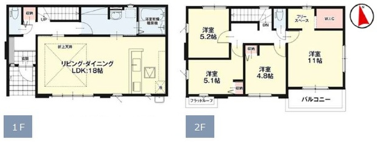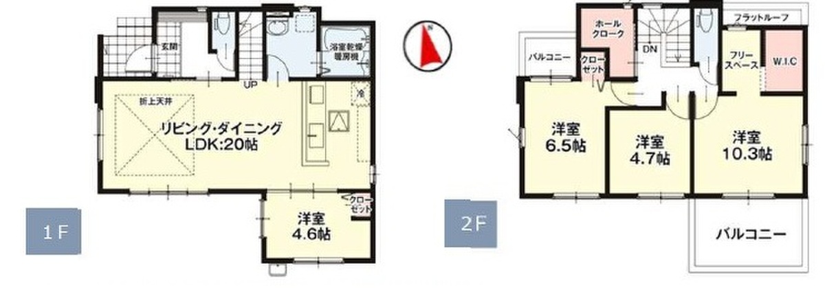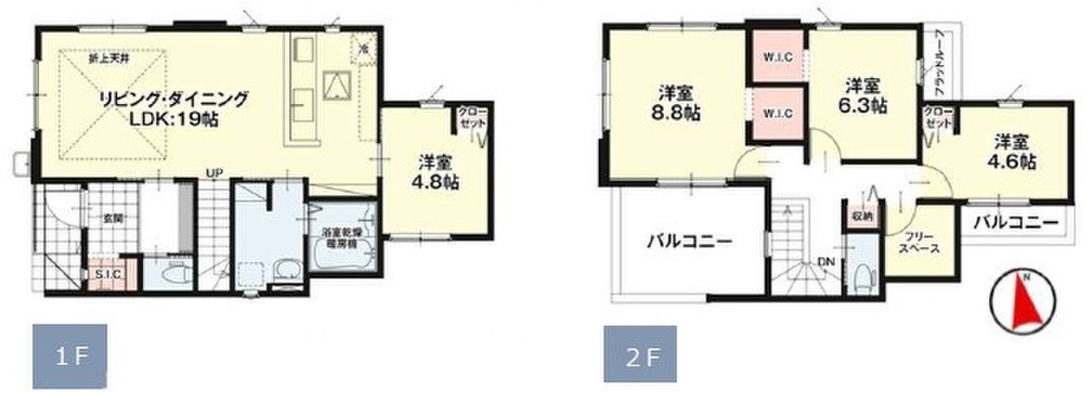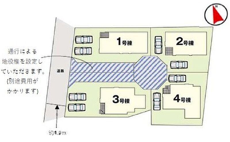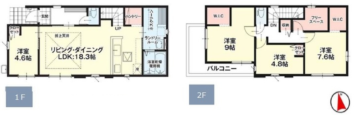 | 建物面積 | 105.28m2(4号棟)~109.31m2(3号棟) | 土地面積 | 223.04m2(4号棟)~159.78m2(1号棟) |
