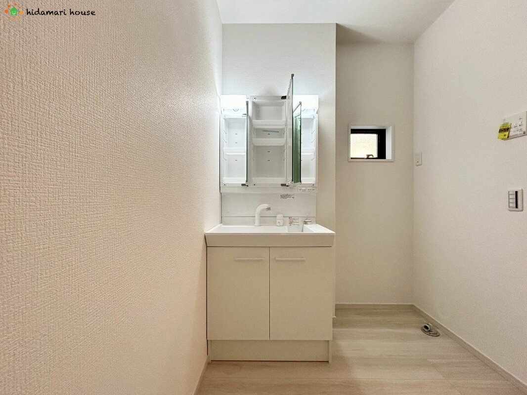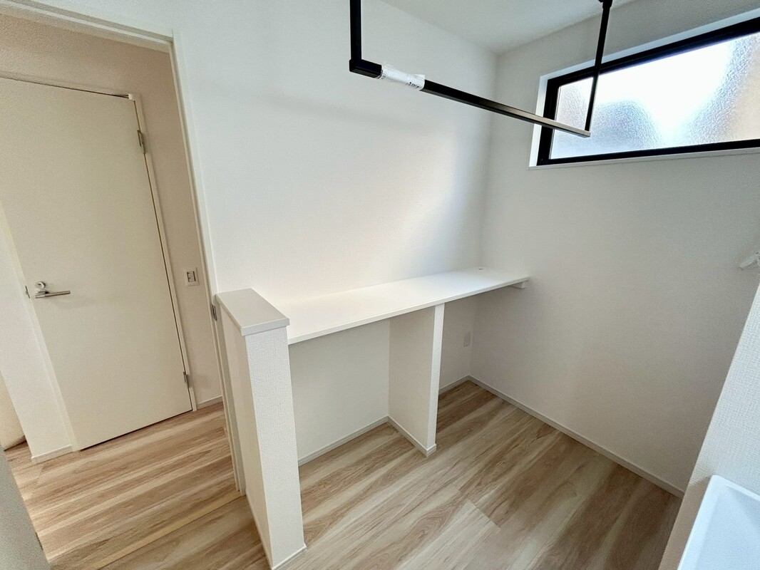 ■1号棟のランドリールームには便利なカウンターと物干し完備!家事効率がアップする嬉しい設備♪