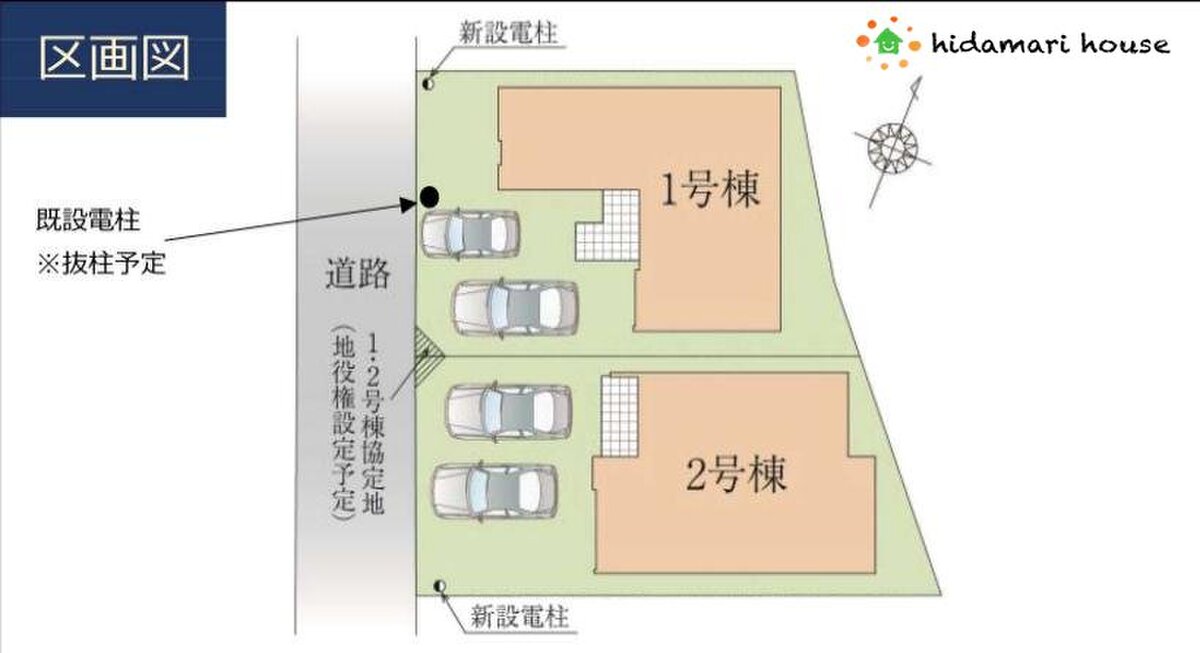 | 建物面積 | 102.71m2(1号棟)~105.56m2(2号棟) | 土地面積 | 126.54m2(2号棟)~126.72m2(1号棟) |