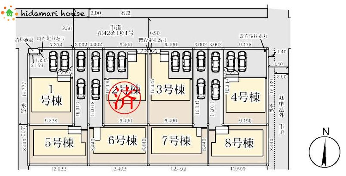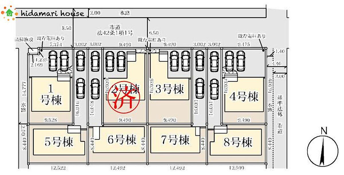 | 駐車場 | 1台 ~ 2台 | 道路の幅員 | 北側6.5m公道 東側3m公道 |