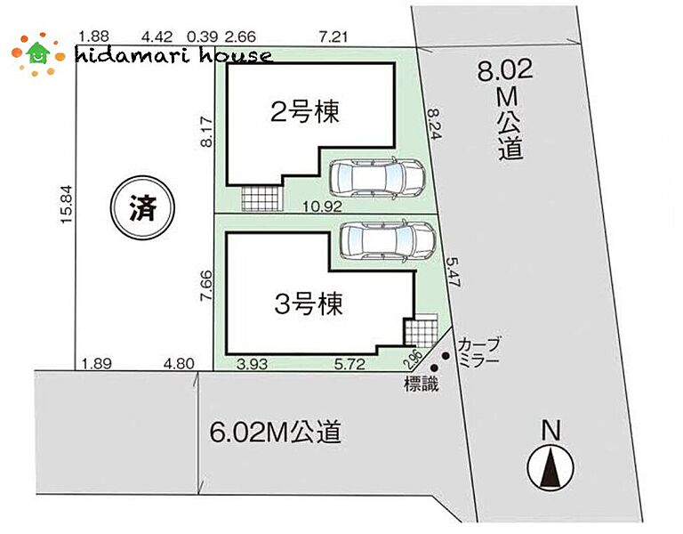 | 駐車場 | 1台 | 道路の幅員 | 東8.02m公道(2・3号棟)、南5.98m公道(3号棟) |