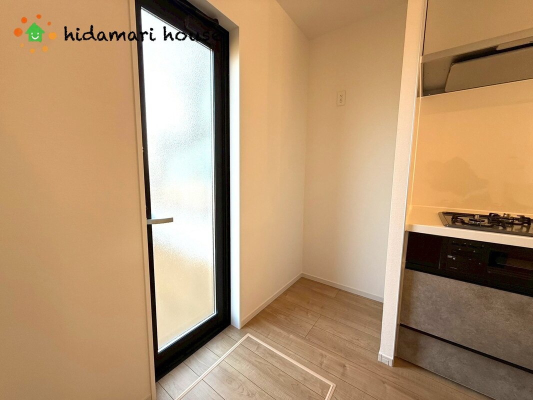 ■キッチンからそのままゴミ出しができる便利な勝手口!冷蔵庫置き場が仕切られているので生活感が隠せるのも嬉しいポイントです♪