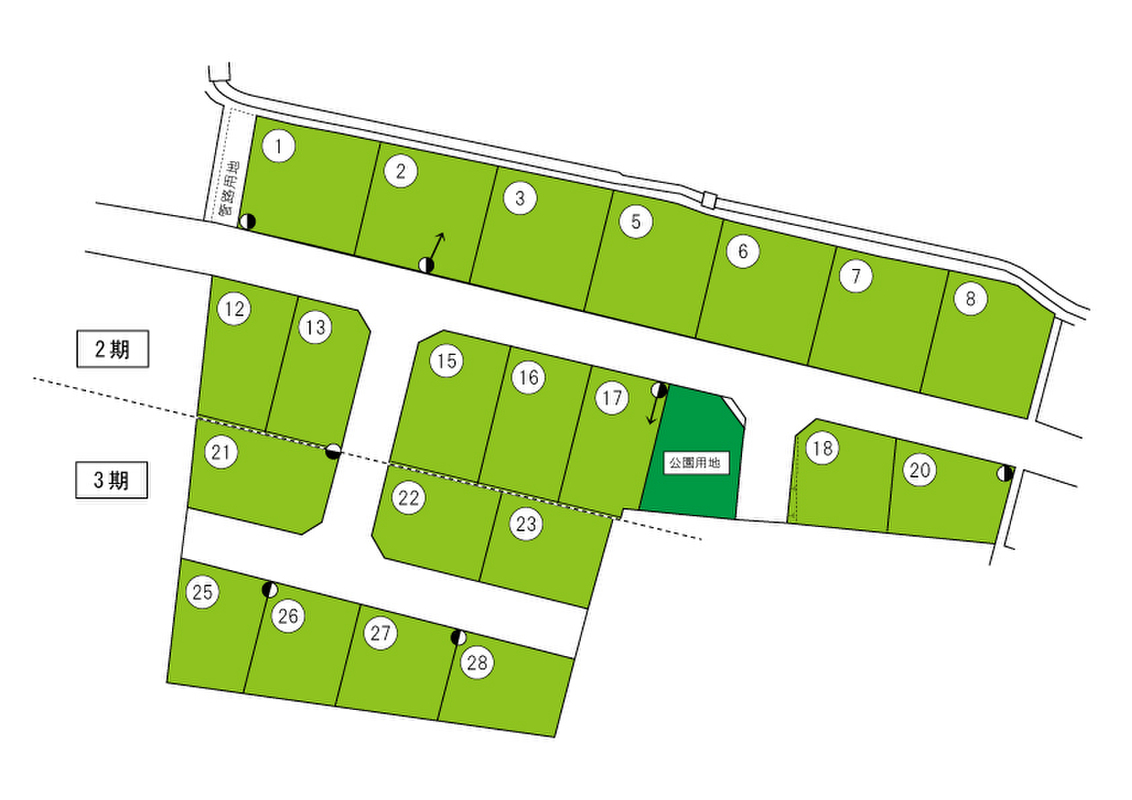 | 建物面積 | 79.49m2(21号)~86.12m2(27号、28号) | 土地面積 | 142.42m2(27号)~173.23m2(21号) |