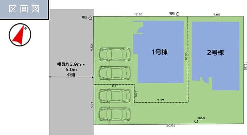| 駐車場 | 2台 | 道路の幅員 | 道路幅:5.9m、アスファルト舗装、南西 5.9m 公道 |